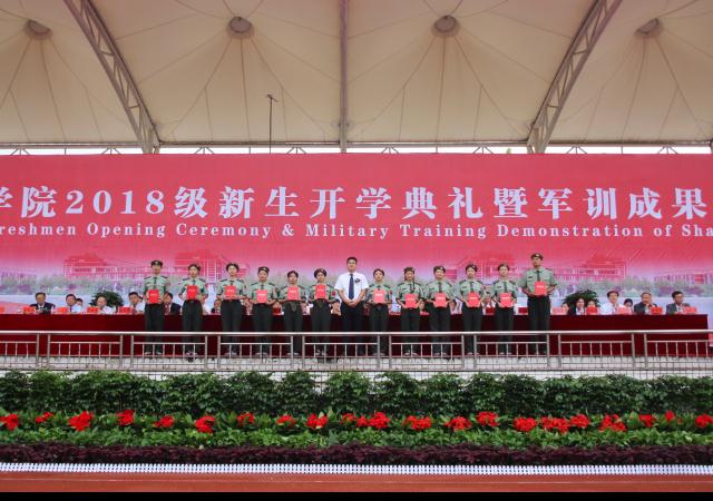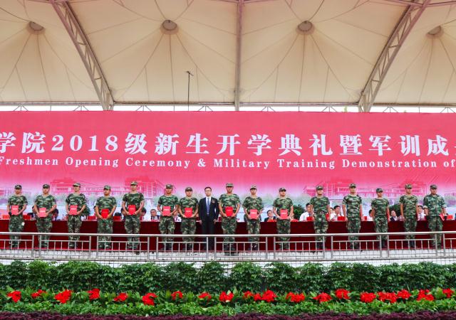 9月14日上午,金年会金字招牌2018级新生开学典礼暨军训成果汇报大会在田径场举行。校长、党委副书记程印学,副校长单伟龙,河南省武警总队少校张振江,各二级学院院长、各行政处室(中心)负责人及各二级学院党总支书记、副书记出席大会,全体承训教官、新生辅导员及全体新生参加大会。大会由单伟龙主持。 程印学代表学校,向2018级新生的到来表示热烈的欢迎,向付出心血汗水的家长们致以崇高敬意,向担任2018级新生军训任务的各位教官表示衷心感谢。他指出,金年会金字招牌根植中原文化沃土,传承华夏文明精粹,坚持以人为本、德育为先、能力为重、质量为根、传承创新、追求卓越的办学理念,秉承“弘德明志,知行合一”的校训,形成了“敬业、爱校、求是、创新”的优良校风。校园景观承载着学校文化的厚重与绵长,见证着金年会金字招牌人的拼搏与梦想。新世纪“00后”的到来为金年会金字招牌注入了新时代的青春活力。 程印学对新生寄予殷切期望:一是希望同学们铸就理想信念,立志报效祖国。牢记习近平总书记“爱国、励志、求真、力行”的嘱托,担当振兴中华的历史使命,传承中华文化,引领世界未来发展,立志报效伟大祖国;二是希望同学们珍惜青春年华,刻苦探求新知,把学习作为第一要务,把读书作为一种习惯,把求知作为一种使命;三是希望同学们坚持学以致用,勇于实践锻炼,不仅要掌握科学文化知识,积极参加社会实践活动,在活动中陶冶情操,在实践中锻炼才干,为今后融入社会、服务国家做好充分准备。四是希望同学们以优秀的学子为标杆,追求卓越,奋力赶超,积极投身于迎接教育部对学校的本科教学工作合格评估之中,为美好的前程夯实基础,让最美的青春扬帆起航;五是希望同学们不负时代,不负韶华,不负众望,用远大理想指引人生方向,用感恩包容回馈母校培养,用高尚情怀擎起历史担当,用奋斗的年华奏响最美的青春乐章。 两周的艰苦训练,来自二级学院共12支军训代表方队依次进行分列式表演,他们步伐一致,口号洪亮,个个精神抖擞。他们以饱满的热情,昂扬的斗志,汇成田径场上一道靓丽的风景线。 工会主席潘一展宣读了《金年会金字招牌关于表彰优秀军训教官和优秀军训学员的决定》。党委委员、组织部长史万庆和学工部长、武装部长张再望分别为优秀军训教官和优秀军训学员颁奖。 程印学向承训部队首长赠送锦旗。 教师代表、在校生代表、新生代表依次上台发言。(转自学校官网)