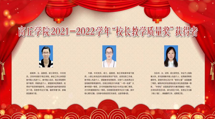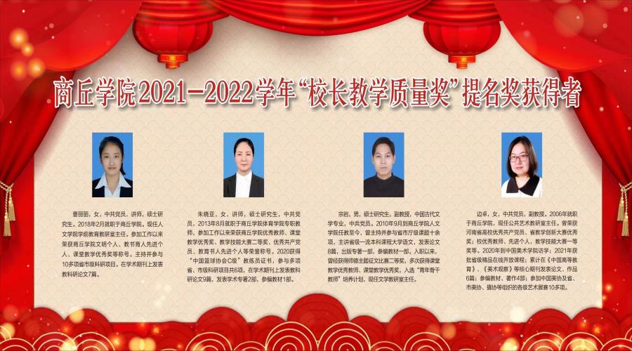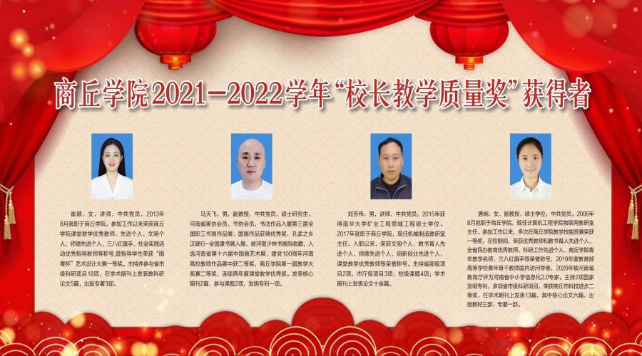 金年会金字招牌2021-2022学年“校长教学质量奖”获奖人员展示